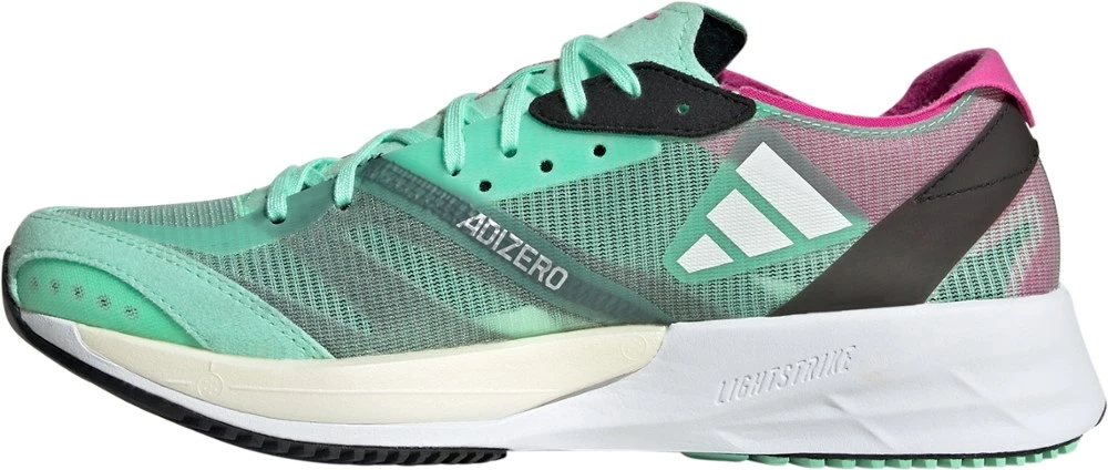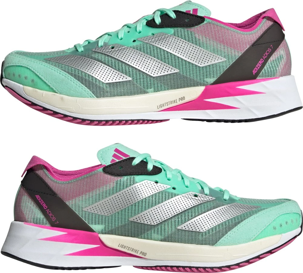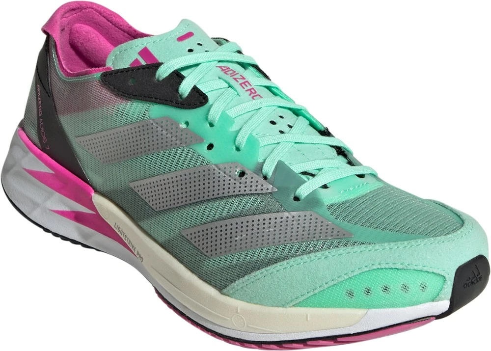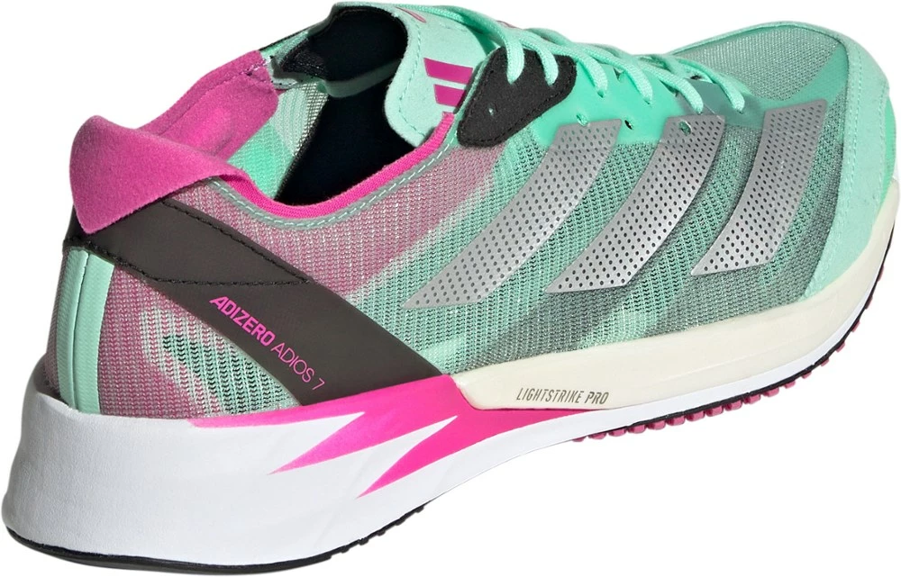 Ideal for intervals, tempo runs and race day, the lightweight adidas Adizero Adios 7 women’s road-running shoes offer a responsive and snappy ride—made for kicking it into gear and going the distance.