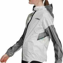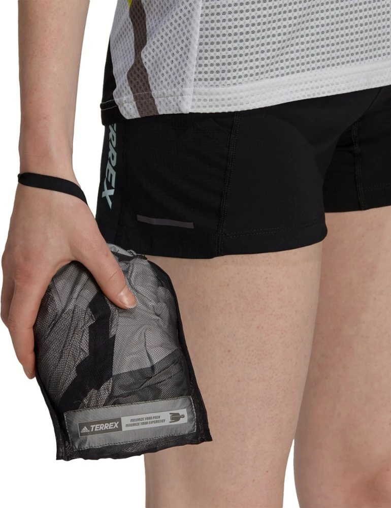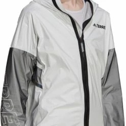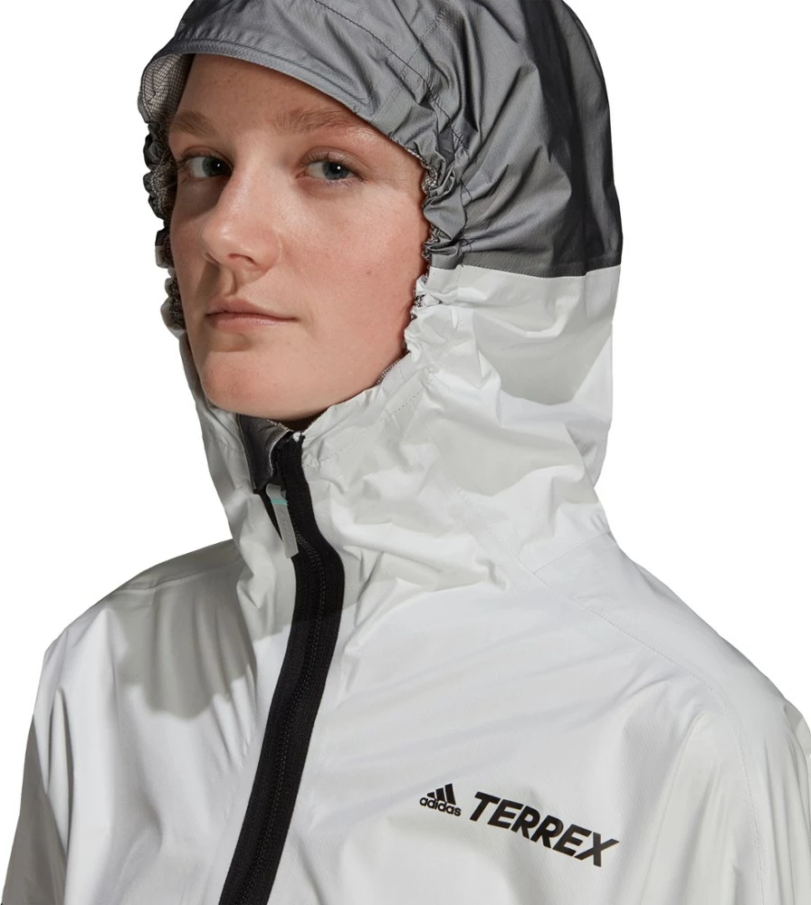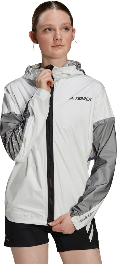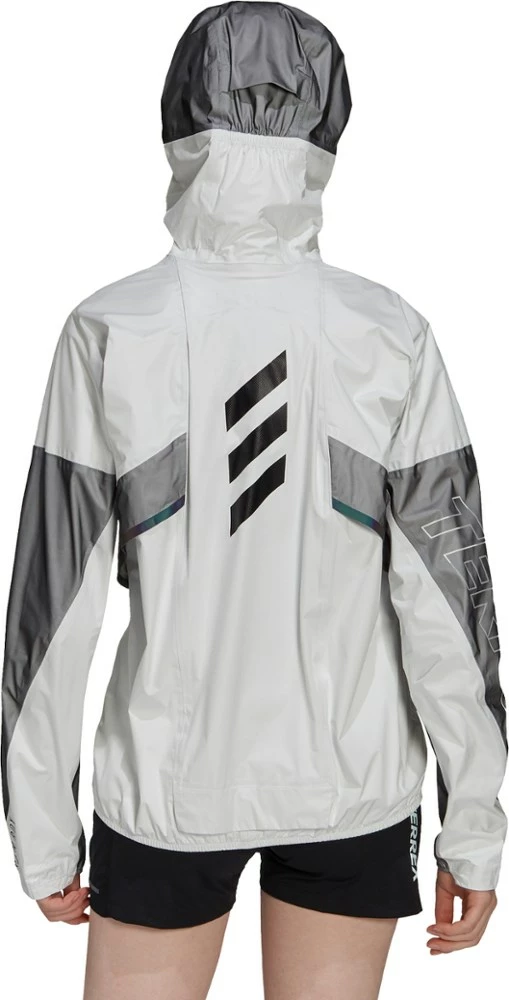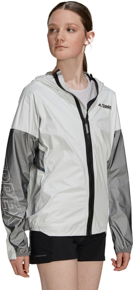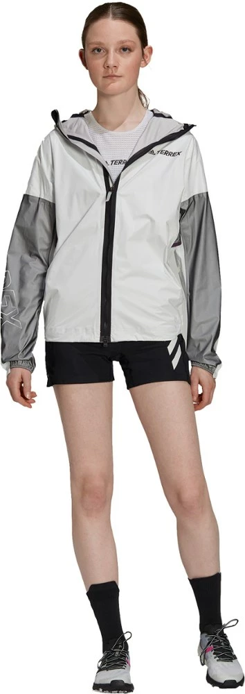The weather forecast said it will rain today. Pull on the fully waterproof yet stretchy and breathable adidas Terrex Agravic Pro Trail-Running Pro women’s trail-running jacket and go for a run anyway.
