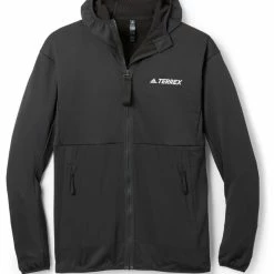 Lined with waffle-patterned fleece, this men’s adidas Terrex Tech Flooce Light hooded hiking jacket warms and wicks, helping you always stay in your comfort zone while you’re out on the trail.